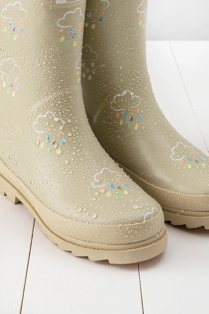 This trendy Khaki Green is great for any nature-loving fan bringing earthy hues and comfort. These knee-high boots feature our signature colour-changing technology, just like our kids' wellies. A simple splash of water transforms the white cloud print into colour! Plus, they're lined with fleece for extra warmth and come with a complimentary Grass & Air tote bag.