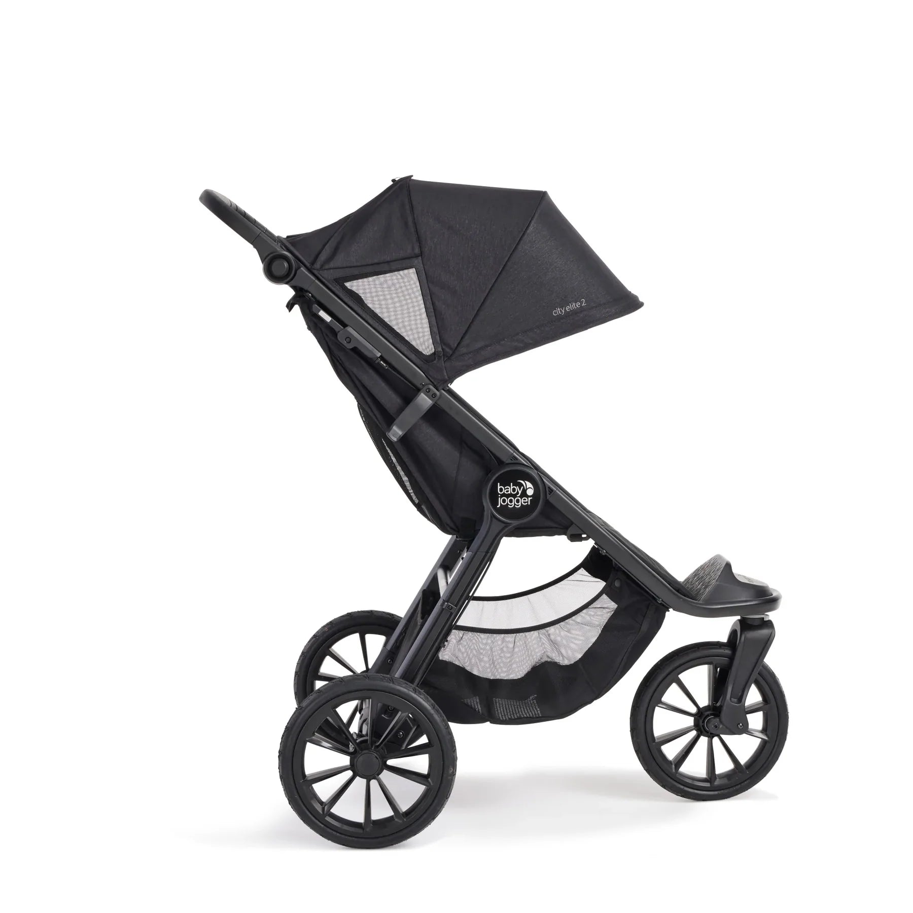 The City Elite® 2 provides ultimate convenience with Baby Jogger's signature one-hand, quick and compact fold, a height-adjustable handlebar, and a hand-operated parking brake.