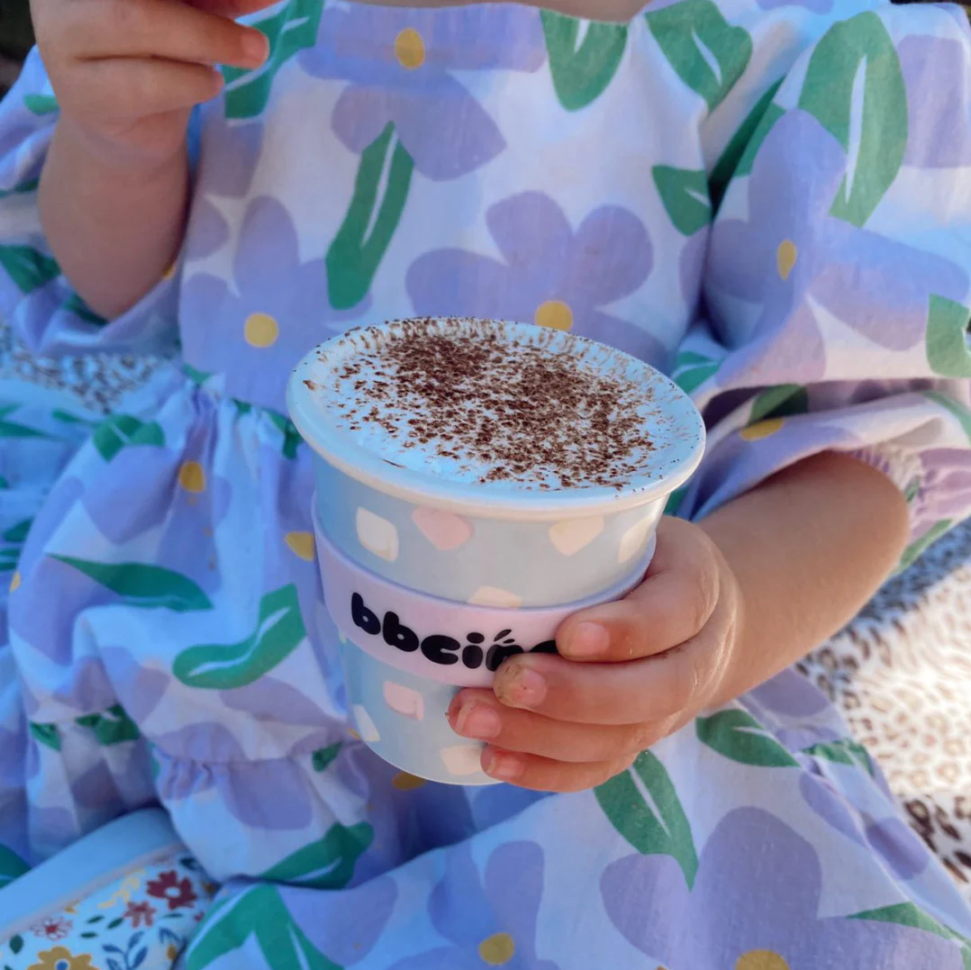 This reusable babycino cup is for our laid-back MELLOW little babes! Whether it's for a cool cat you already know, or being purchased as a gift to manifest cool cat vibes for a future little babe, this is the BBcino cup for you! Best served with an extra marshmallow!
