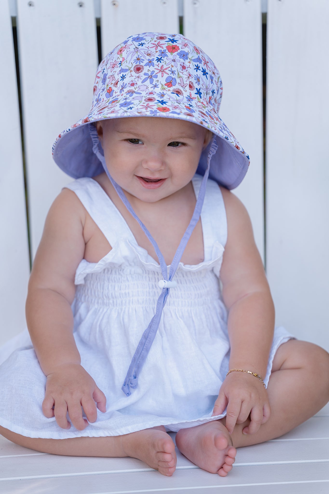 Sweet and sun-smart, the Bella Wildflowers Legionnaire Hat is designed with extra protection in mind for little ones. Made from soft cotton, it features a charming wildflower print in soft pastel tones. The wide brim and long flap at the back provide excellent coverage for faces and necks, while the adjustable chin strap keeps it secure during play. Lightweight and breathable, it’s the perfect everyday hat for babies and toddlers.
