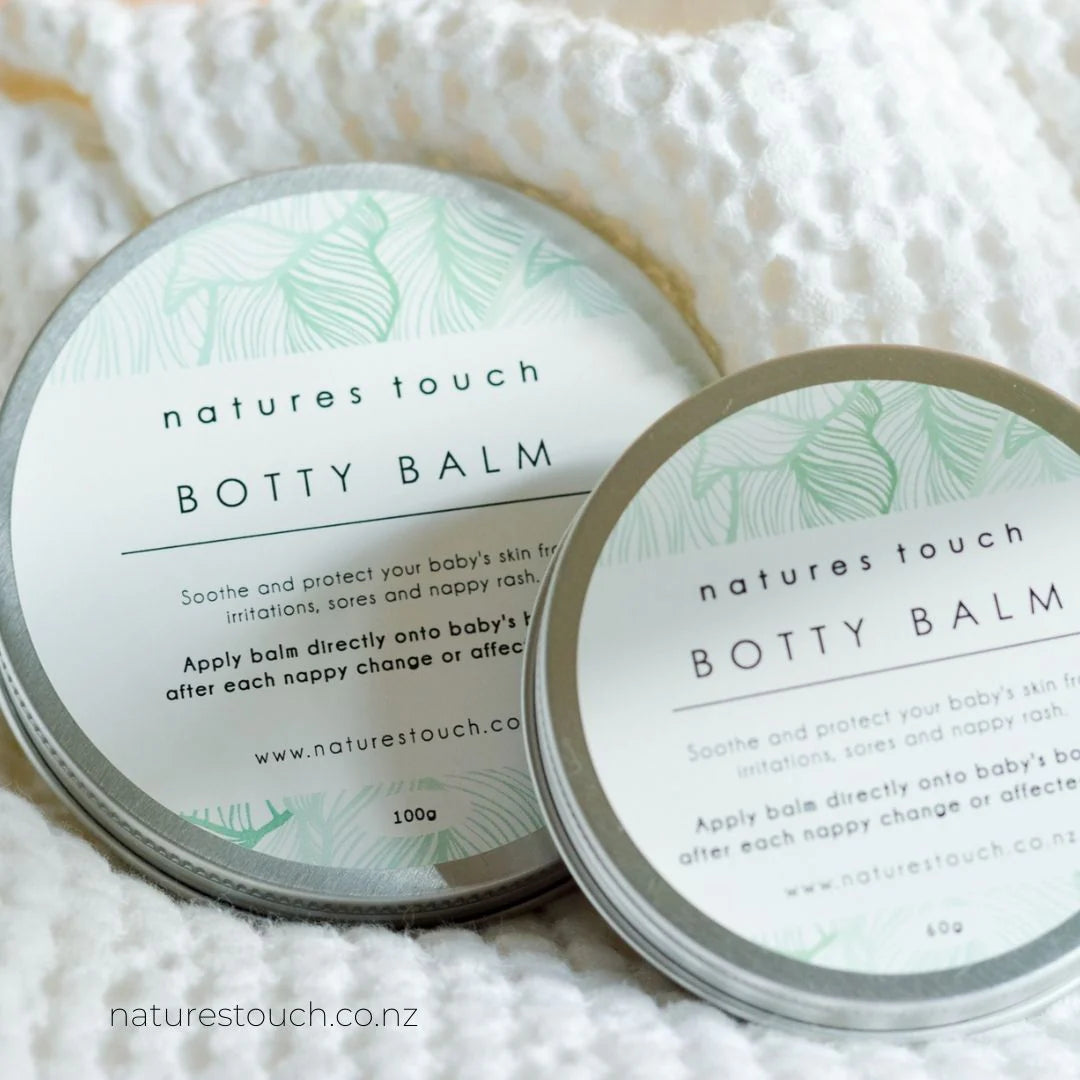 Natures Touch Botty Balm is an all-natural, gentle, and effective solution specifically designed to soothe and protect your little one's delicate skin from irritations including nappy rash.