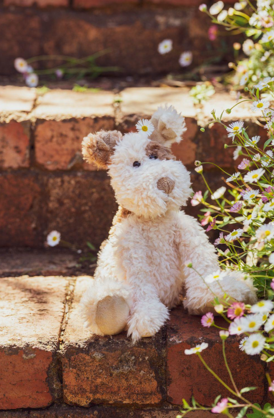 Buddy the Pup, small, sweet & bursting with energy, loves to be around people. He isn't shy like his dad, Buddy Dog—in fact, he is quite the extrovert. He inherited his dad's piercing intellect & delights in performing tricks for anyone who will indulge him. Buddy the Pup can spin, shake hands, roll over, beg, & bark on cue (just be sure to give him a tasty Schmacko or liver treat afterwards). His dad wants him to study Law when he grows up but Buddy Pup's secret ambition is to join the circus & become an acrobat.