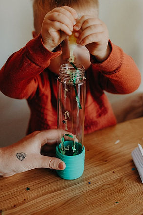 Jellystone Designs' award-winning DIY Calm Down Bottle is a unique sensory bottle, where you receive all the creative elements required to create a sensory bottle perfect for your child. Just add warm water and a dash of washing-up liquid and it's ready to go! With this option, you can refill and reuse the sensory bottle for endless creative options.