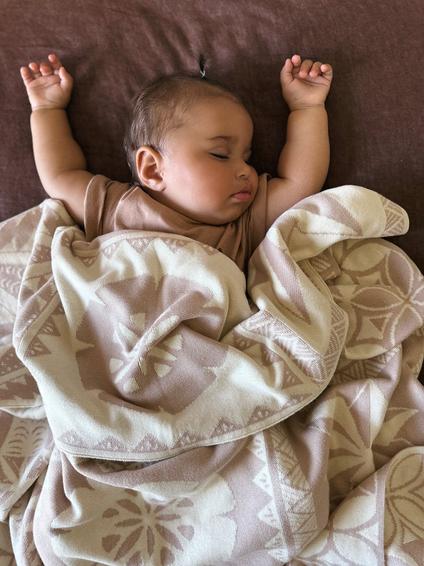 Introducing Island Pepe's cotton knitted blankets, designed to become an essential part of your little one's comfort and style. Each intricate symbol woven into these blankets celebrates the rich heritage of our Polynesian culture.