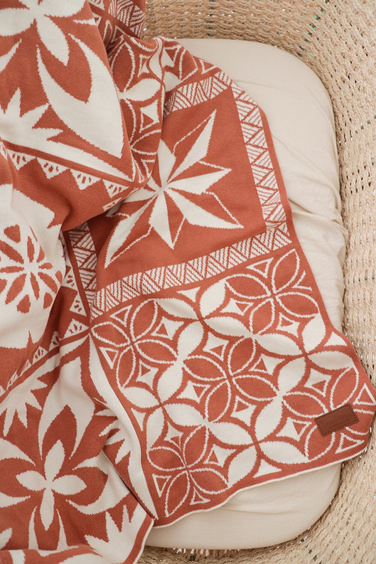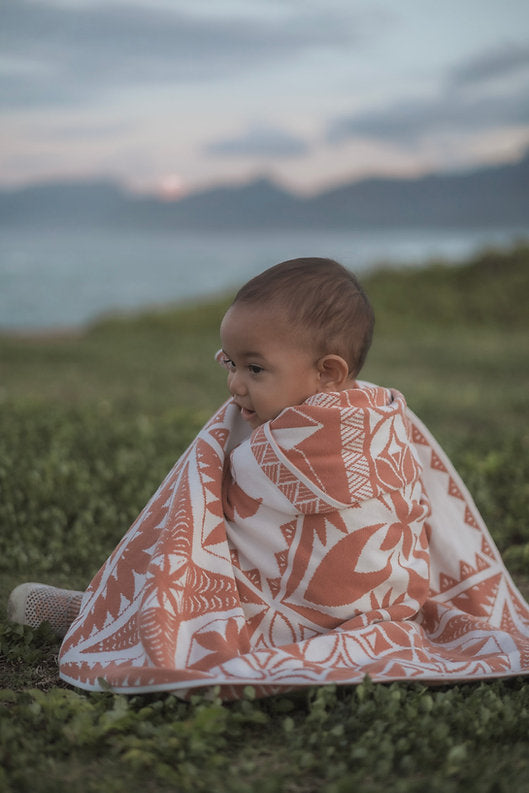 Introducing Island Pepe's cotton knitted blankets, designed to become an essential part of your little one's comfort and style. Each intricate symbol woven into these blankets celebrates the rich heritage of our Polynesian culture.