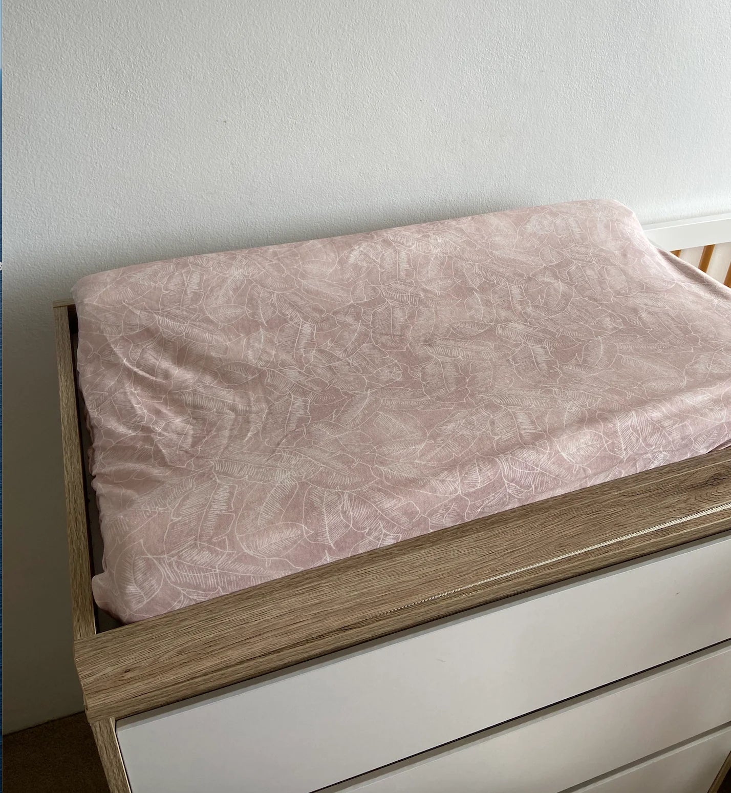 Our watercolour range is available in our silky soft bassinet sheet/change table cover. This gorgeous pink palm illustration is full of soft pinks and beautifully toned to suit any nursery.