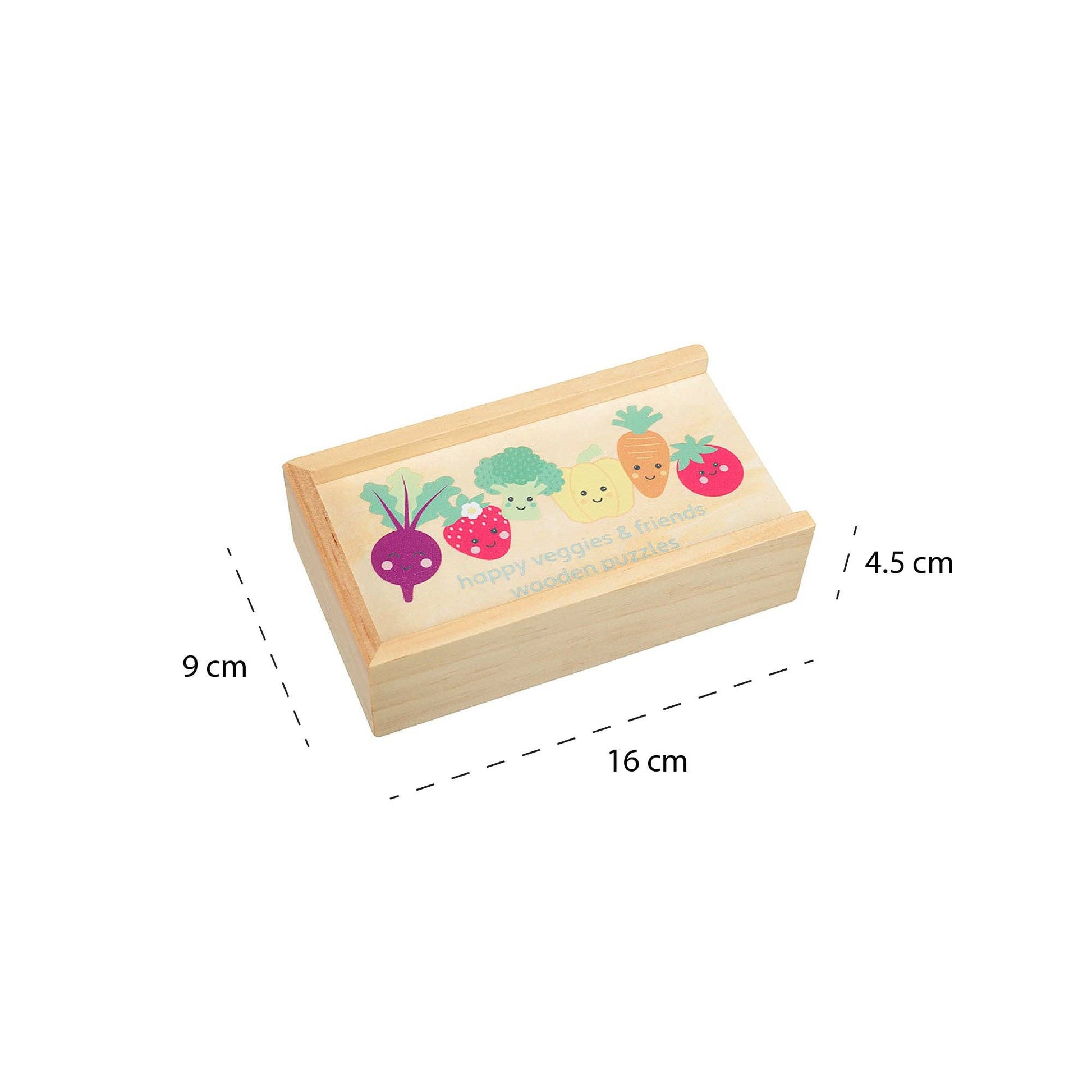 A beautiful set of 6 wooden puzzles, with 6 different colourful happy veggies!