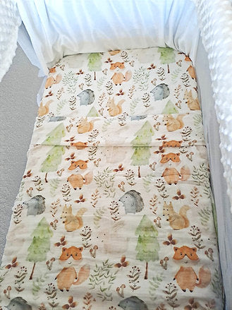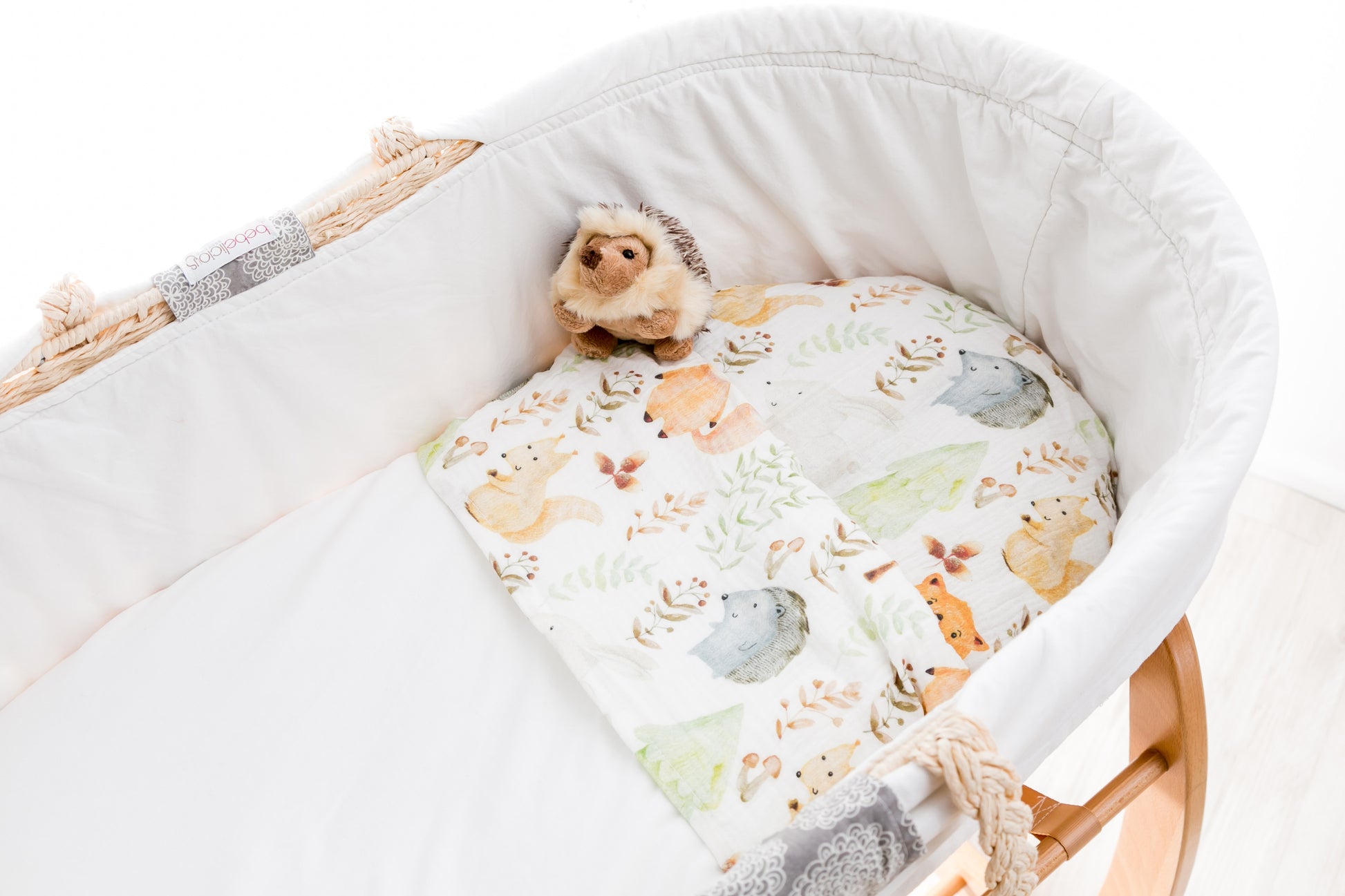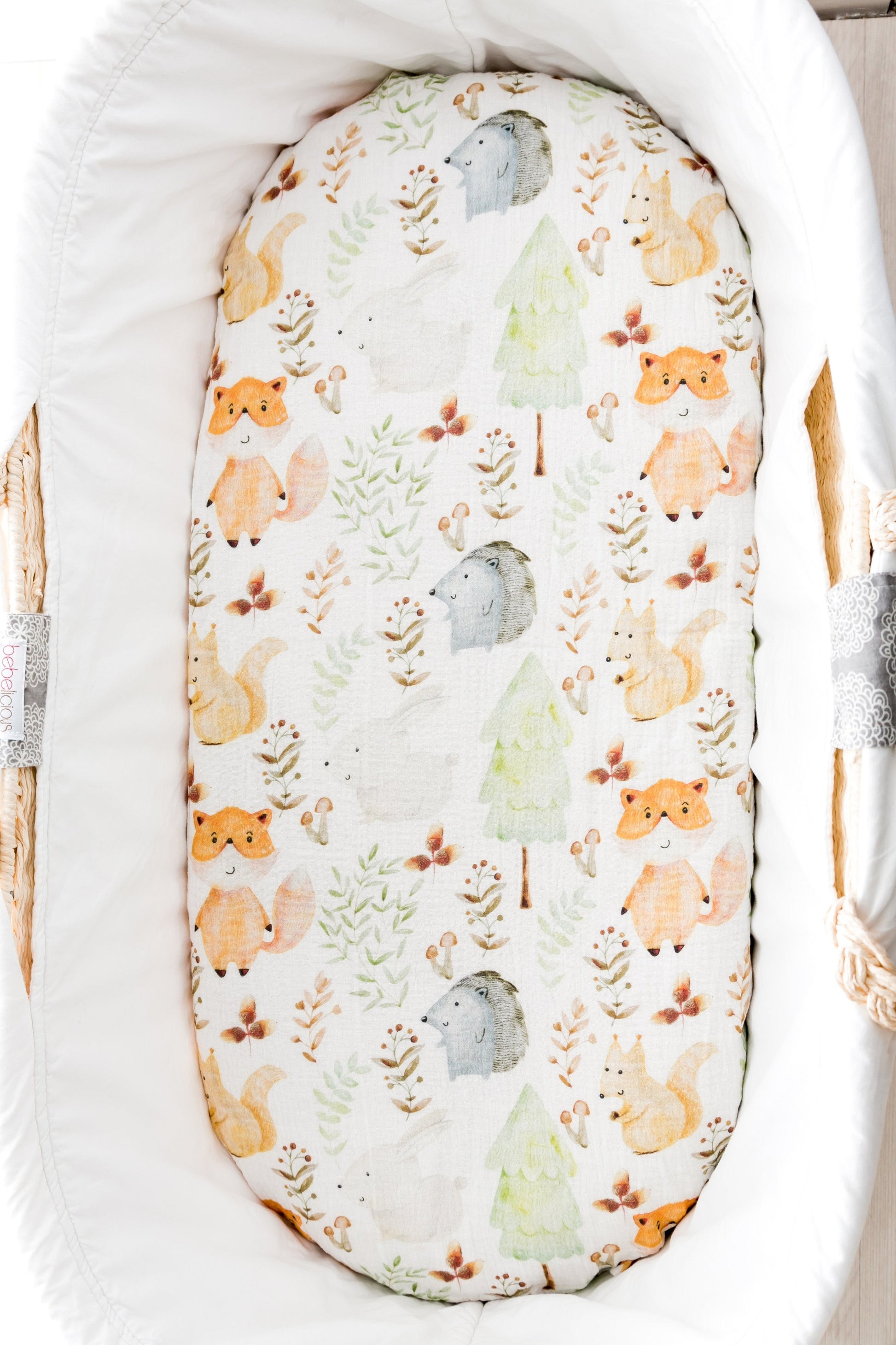 Snuglaroo's Little Woodlands Bassinet Sheet is the cutest addition to your little one's room. These sheets are 80cm x 50cm made out of high quality 100% organic muslin cotton and are designed to fit co-sleepers/moses baskets/classic bassinets as well as Change Pads.