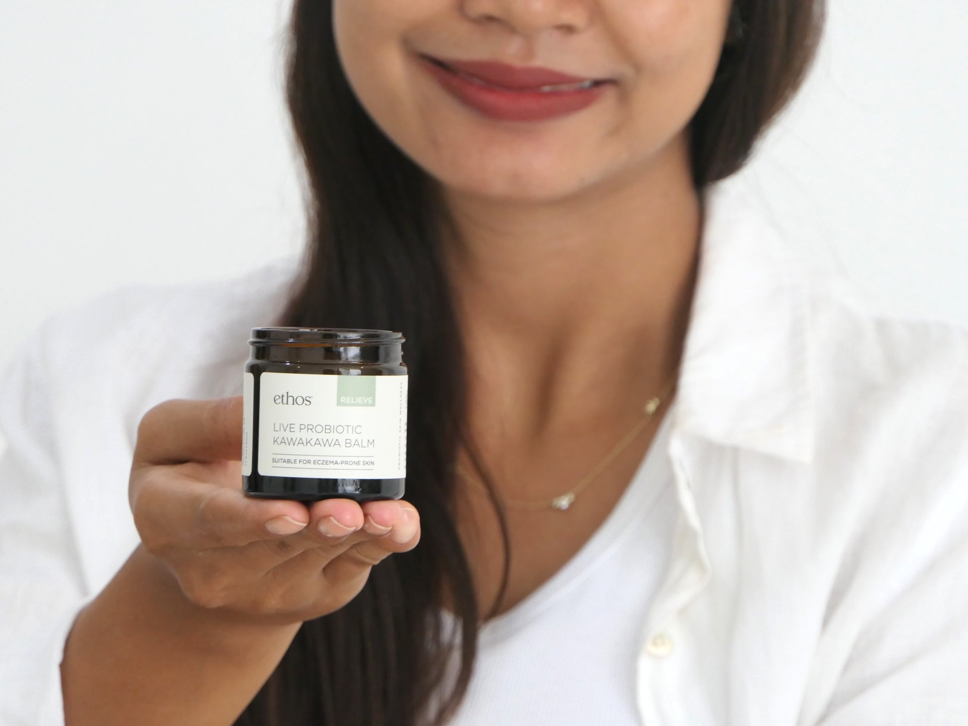 Calm eczema redness with probiotic bio-ferments & kawakawa extract.