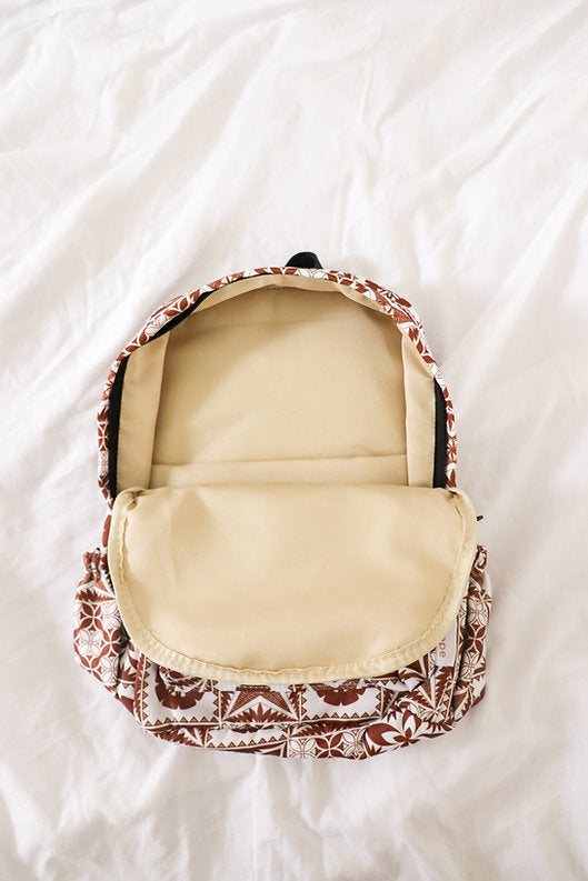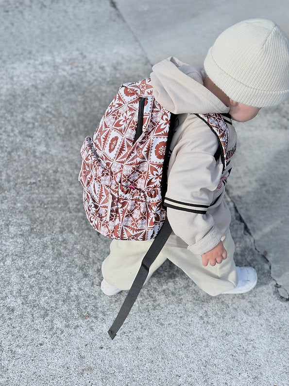 Introducing our mini backpacks for your little island pepe! This bag is perfect for gifting, daycare, church, general use and weekend adventures. Featuring a beautiful Polynesian pattern on the outside and beige lining inside, this bag was created and designed with your little one in mind to suit all occasions.