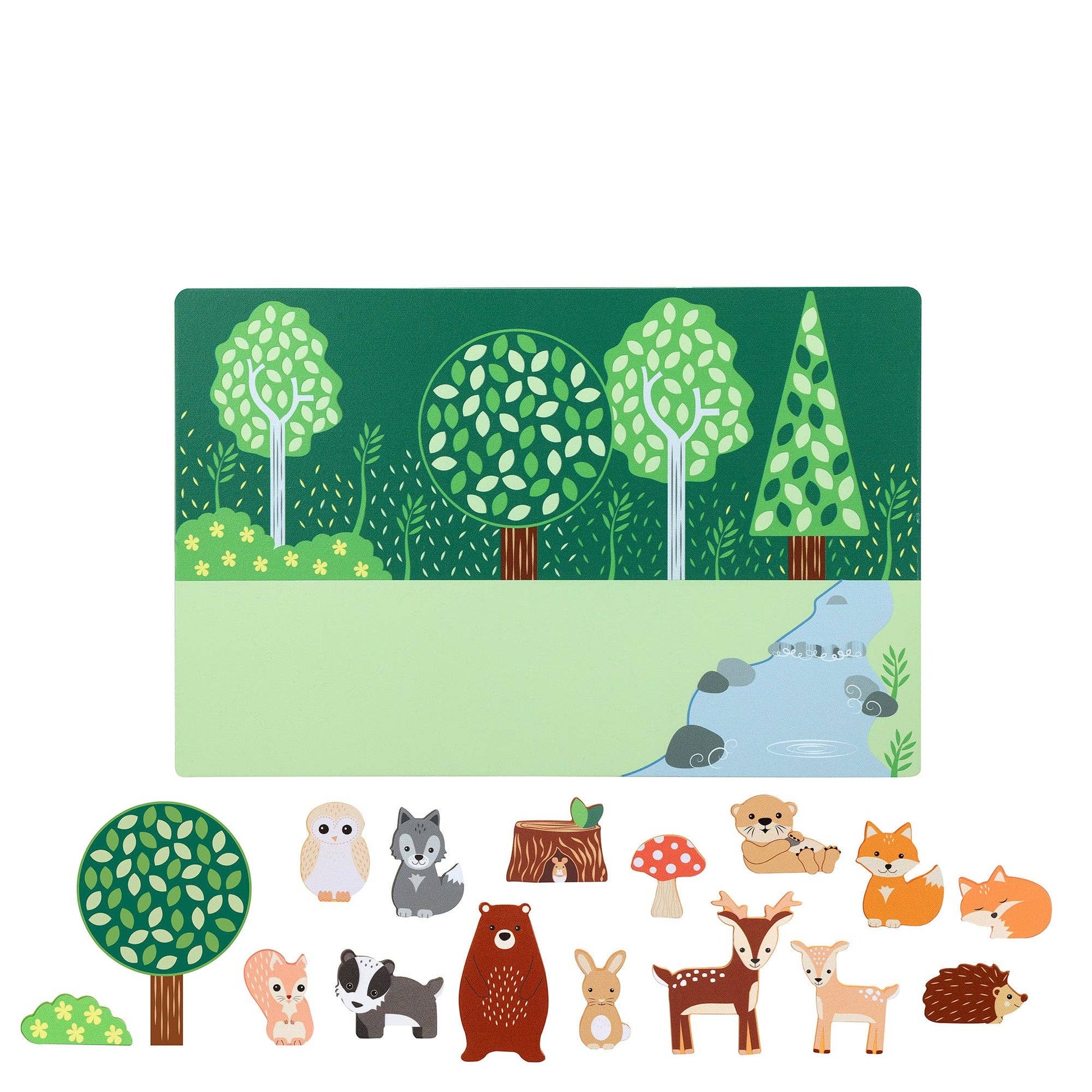 Place all the magnetic woodland animals onto the woodland scene, with endless combinations