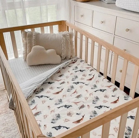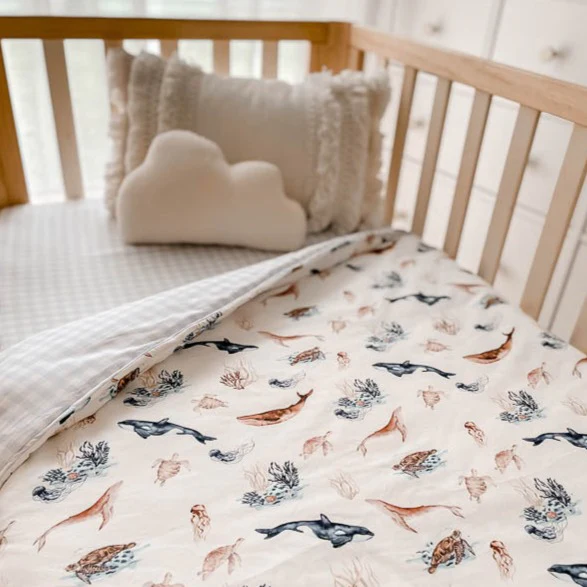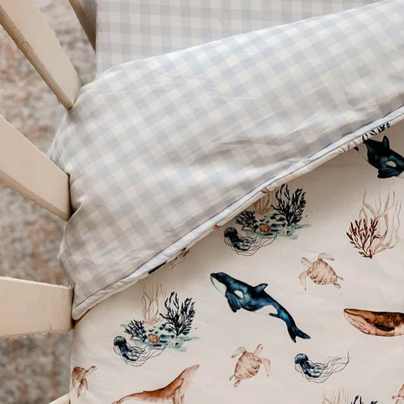 Made from 100% natural products for safety, comfort and quality, the Snuggly Jacks Ocean Cot Quilt is a subtle themed nursery design that will keep your little love cool in summer and warm in winter. 100% organic cotton envelopes your little one, providing breathability and limiting allergens.