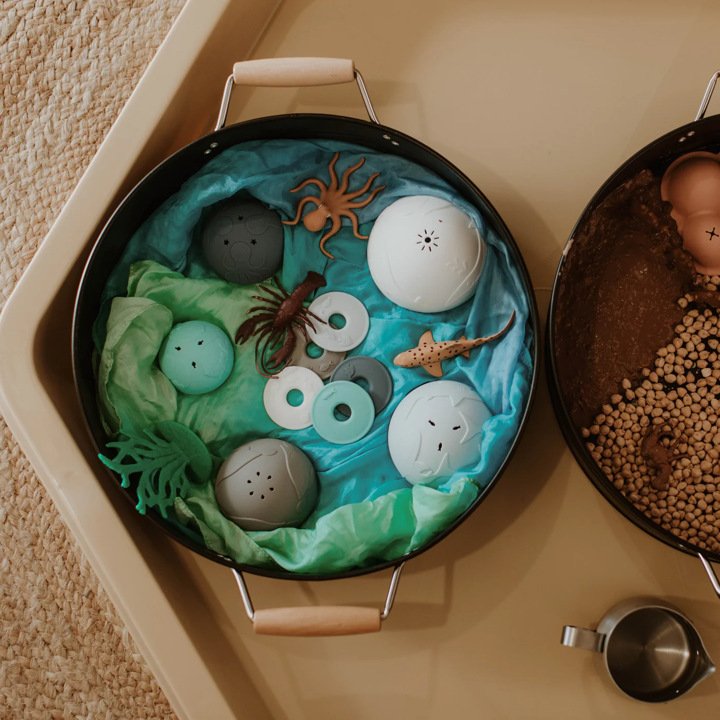 A set of 5 Stacking Cups plus 5 Treasure Coins! Our Ocean Stacking Cups can help your kids explore marine life through sensory play. Stack them up, nest them, hide objects under, texture stamp with sand or playdough...and match the coins with their cup!