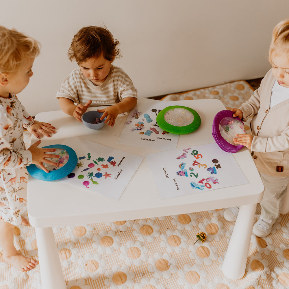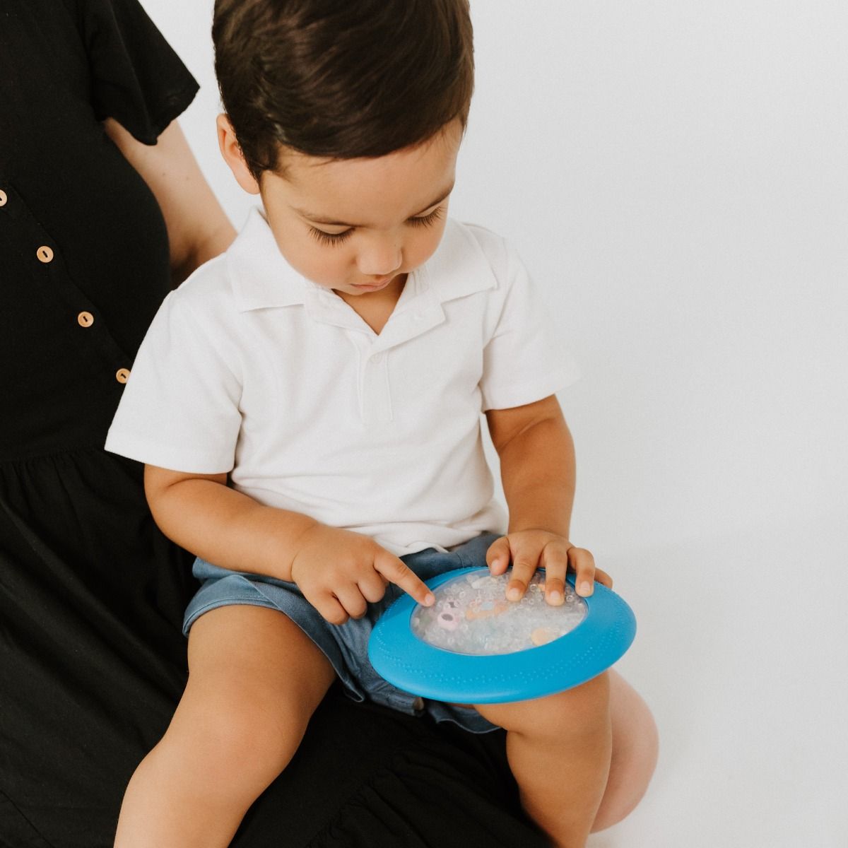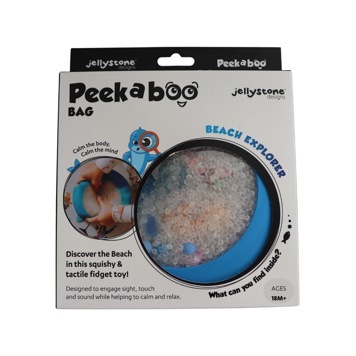 Discover the squishy & tactile portable sensory toy! The Peekaboo Sensory Bag is filled with weighted beads and fun themed figurines for little ones to discover. All the sensory feedback they need without the mess! It is perfectly designed to engage sight, touch and sound while helping to calm and relax.