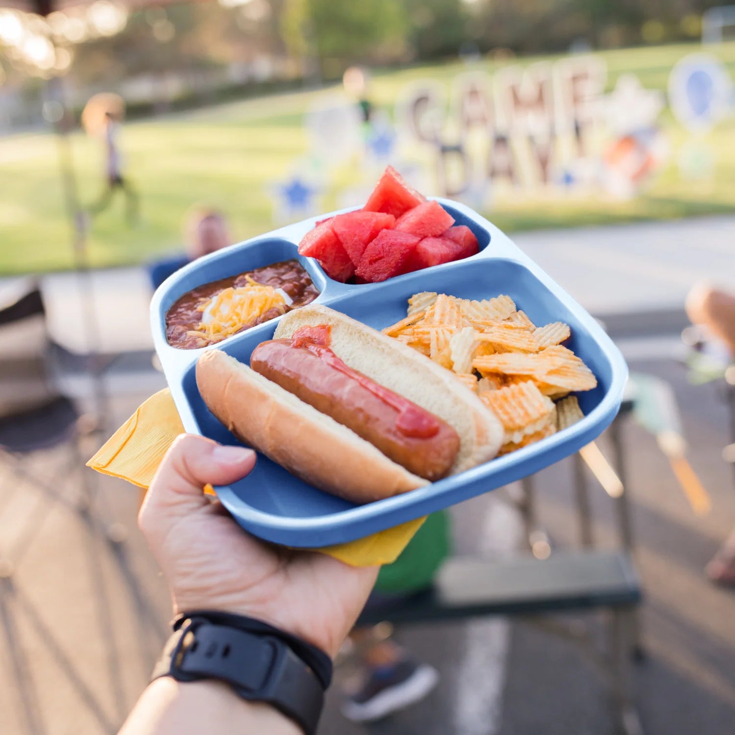 Re-Play's Divided Trays are perfect for the whole family and include a large compartment with two side dish compartments!