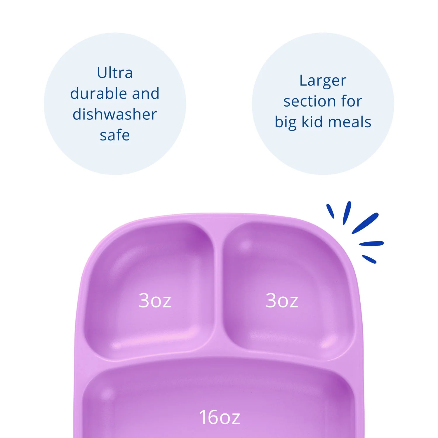 Re-Play's Divided Trays are perfect for the whole family and include a large compartment with two side dish compartments!