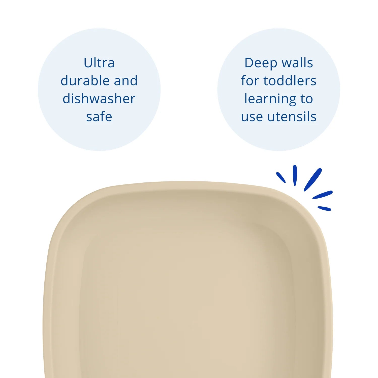 The flat plate's deep walls help toddlers learn to use utensils and help to lower the risk of mess. USA FDA-approved, BPA-Free Plastic made from Recycled Milk Containers, surface coating free, dishwasher safe, durable and lightweight, tested for safety.