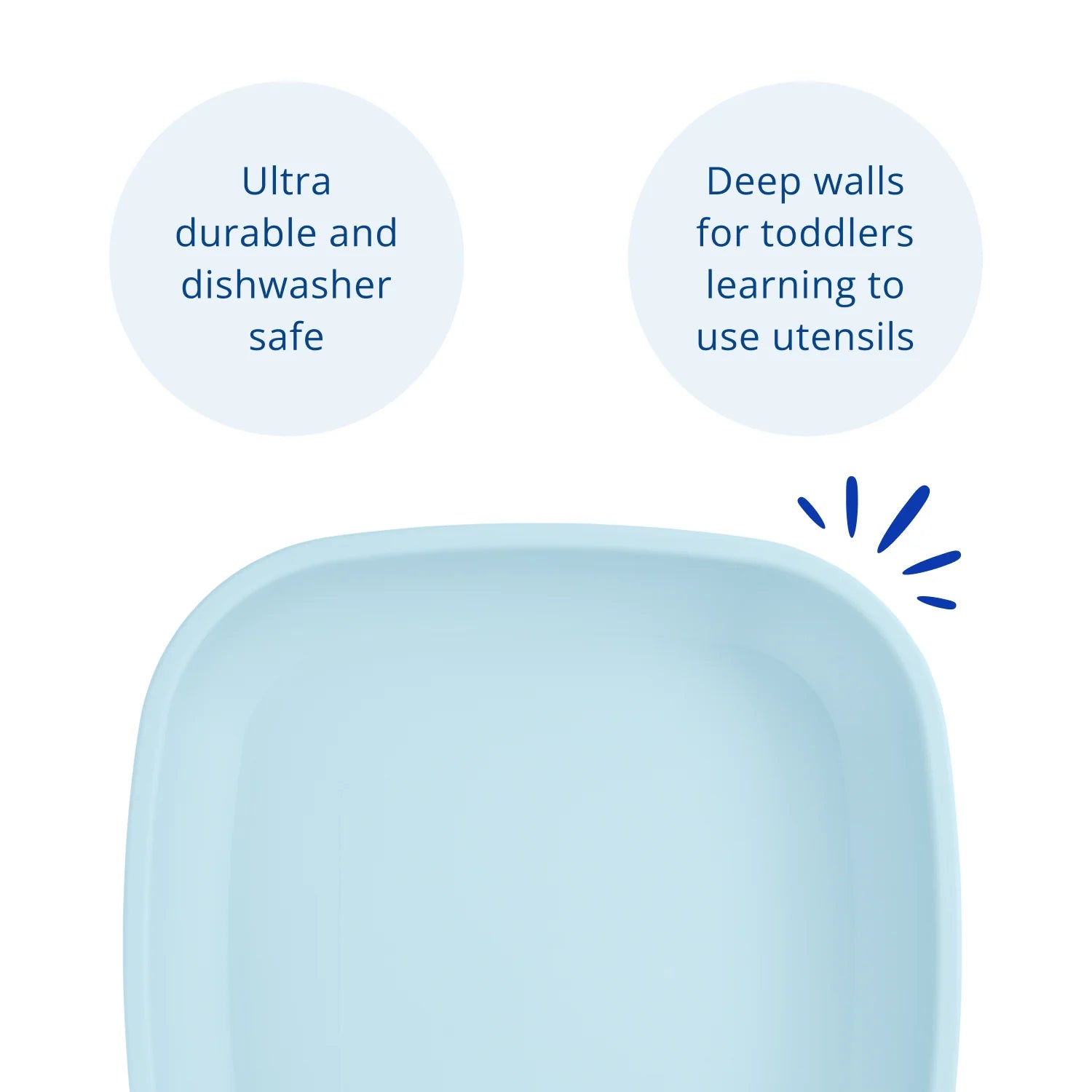 The flat plate's deep walls help toddlers learn to use utensils and help to lower the risk of mess. USA FDA-approved, BPA-Free Plastic made from Recycled Milk Containers, surface coating free, dishwasher safe, durable and lightweight, tested for safety.
