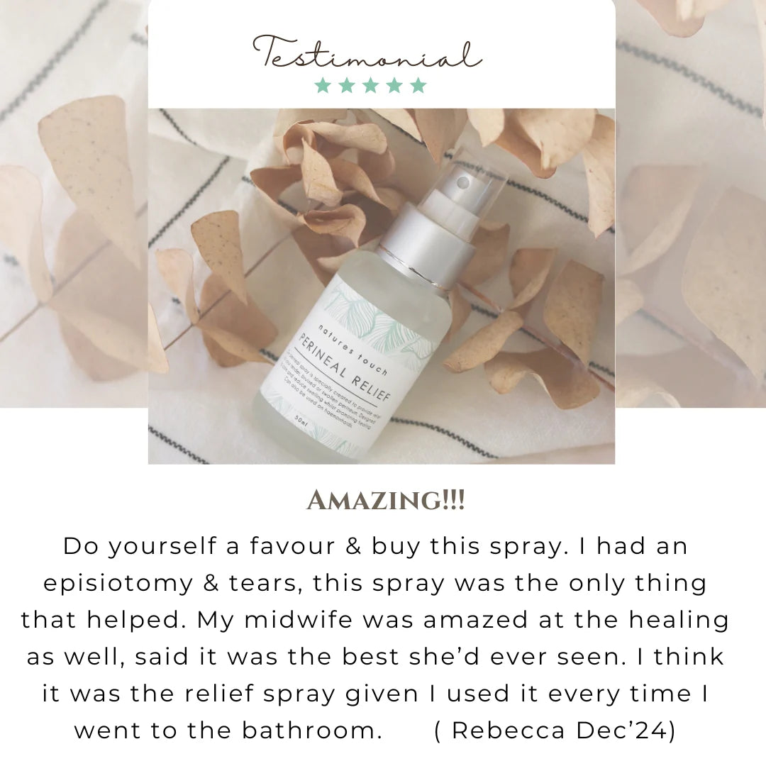 Relief Spray is safe to use in the hours and days post birth, even if you've required stitches, to reduce swelling, soothe pain and support skin repair. It comes ready to use, with no mixing or preparation. Application is super easy with our convenient inverted spray bottle system. You can even use it on your Caesarean Section scar.