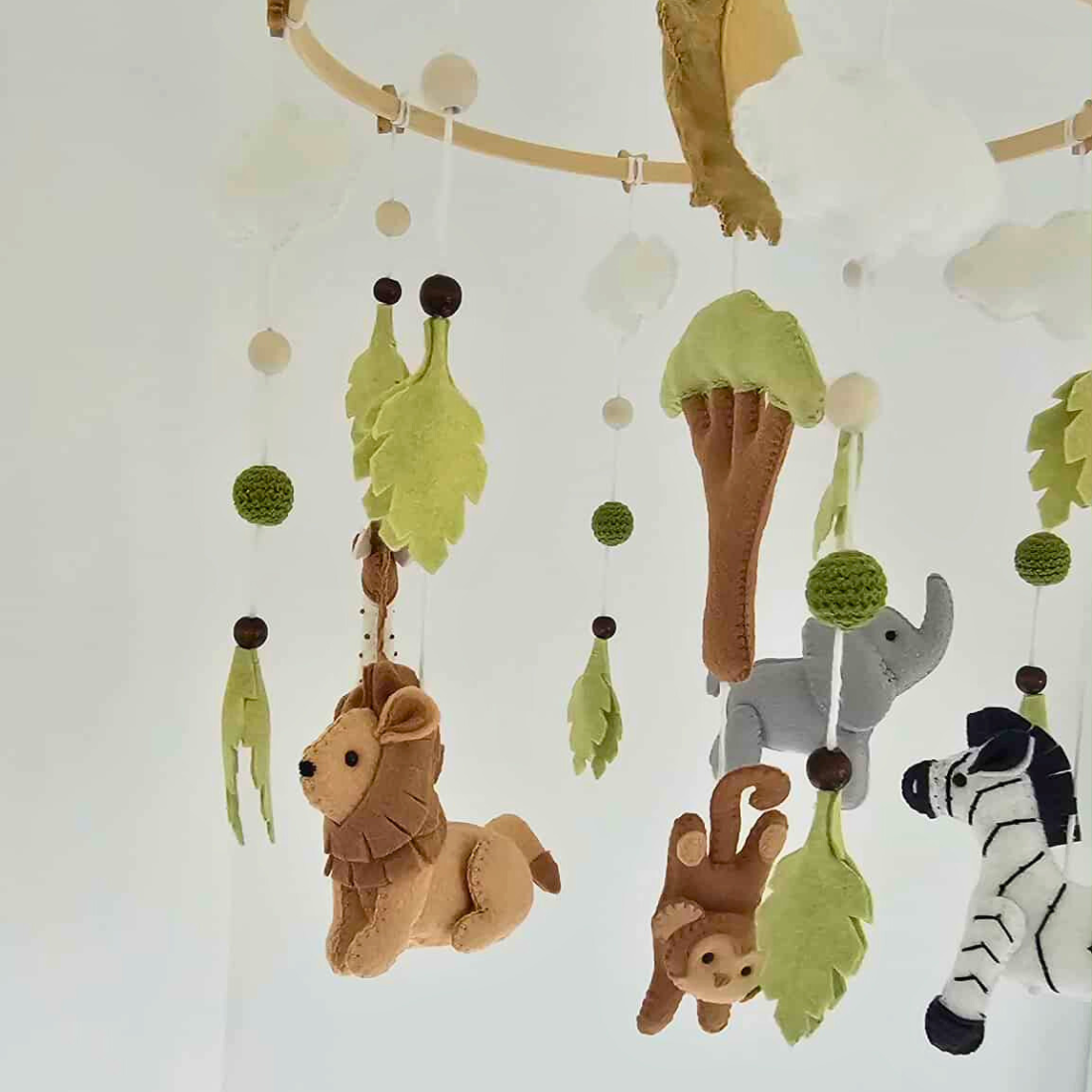 The Safari Dreams Mobile by Jojo & Co is a beautiful nursery accent and a meaningful gift for welcoming a new little explorer into the world.