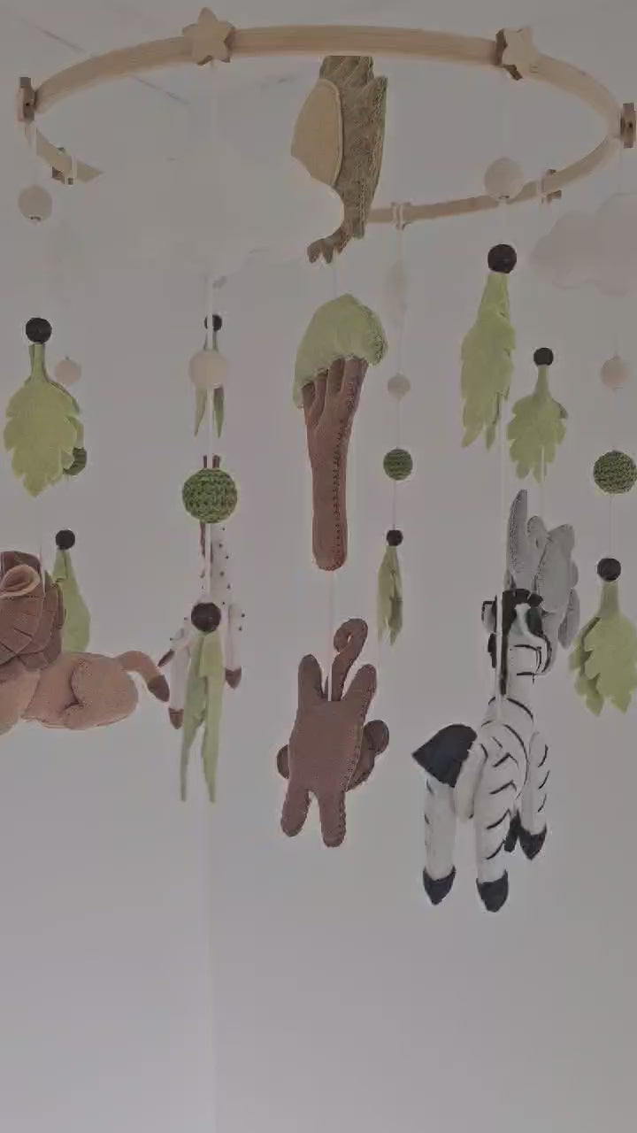 Handmade with premium felt, each element is thoughtfully arranged to float gently overhead, offering soothing movement and visual interest for little ones. Perfect for nurseries with neutral, modern, or adventure-inspired themes, this mobile adds a touch of warmth and wonder to any space.