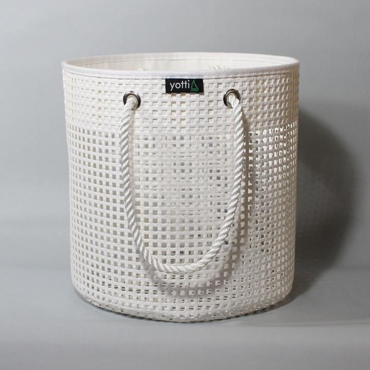 These baskets are built from ridiculously tough marine mesh. This fabric is designed for trampolines on large multi-hull yachts and architectural screens so it's weather proof, incredibly strong and even has a fireproof rating! And they are still fold-able!