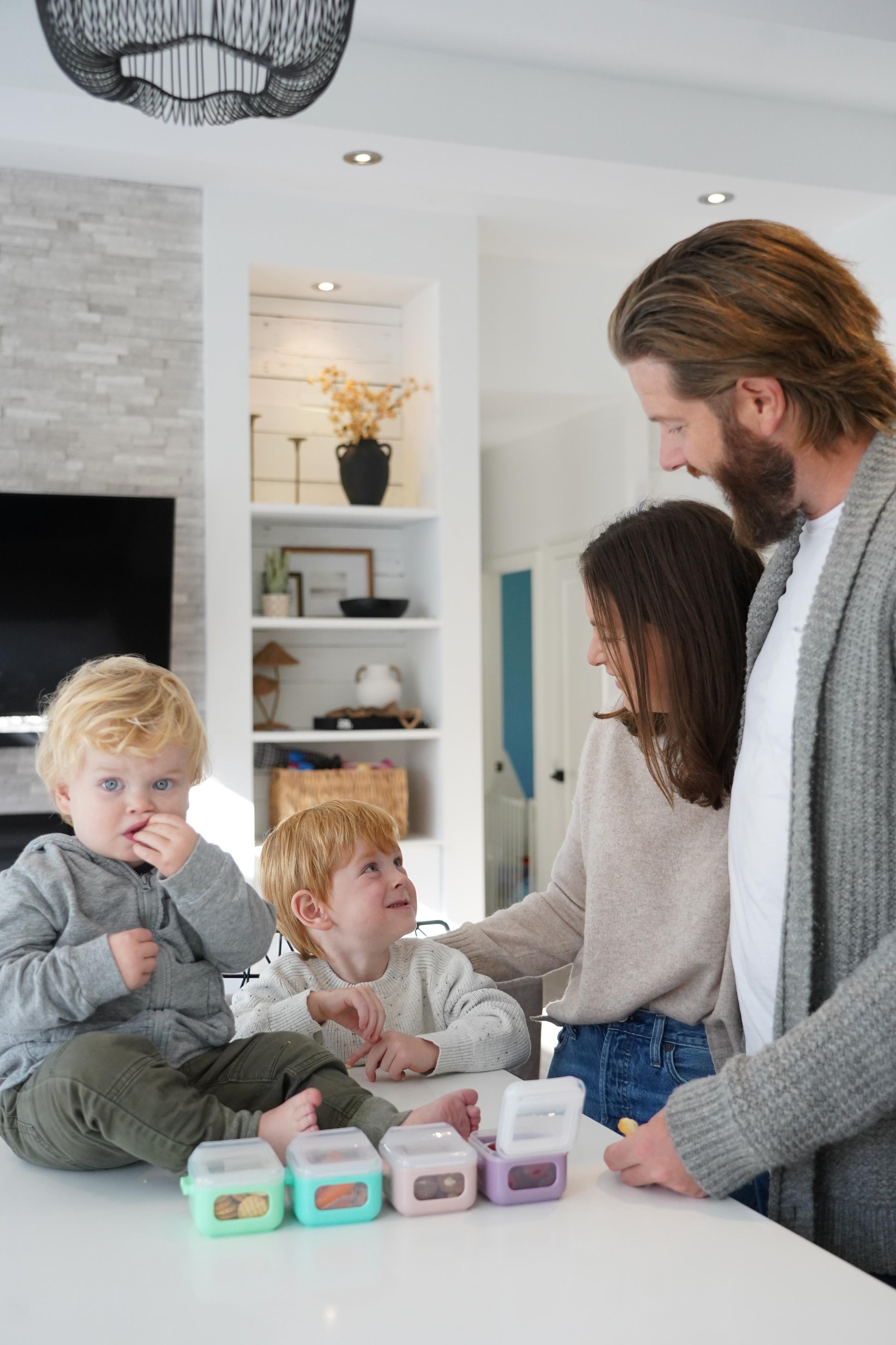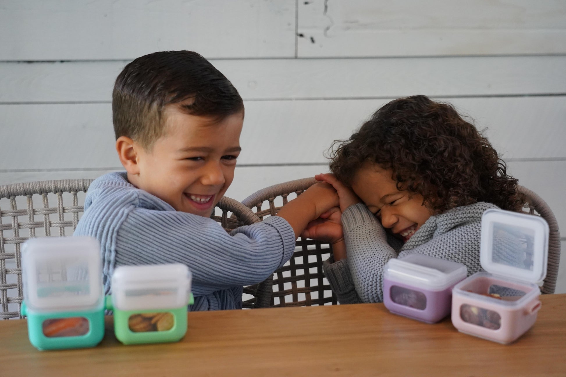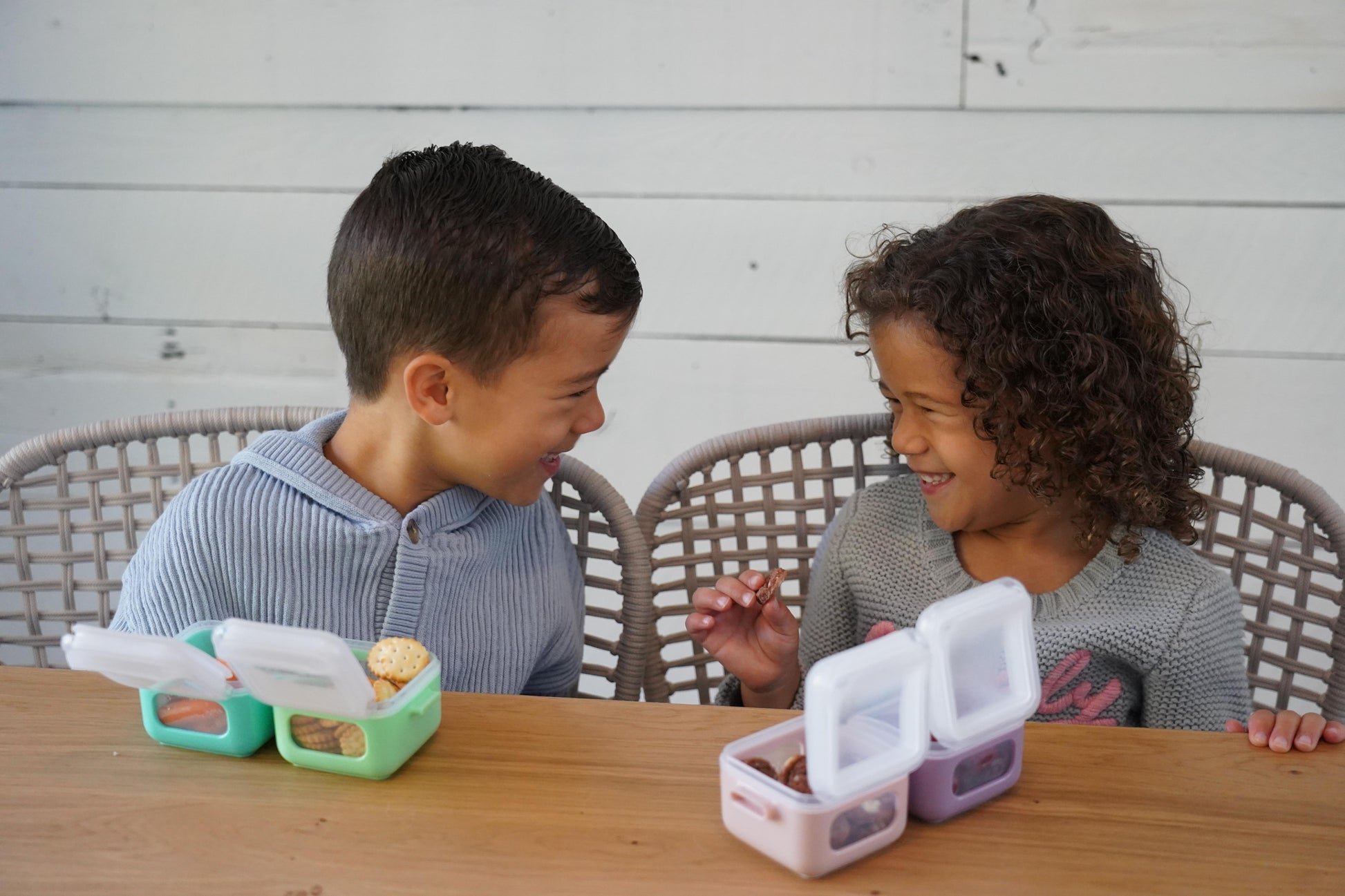 The Melii Snap & Go Cubes are great for snack time! They are made from food safe materials and have a leak-proof hinged lid with a silicone seal to keep foods contained. You can attach the pods together or have them separate. They come in a set of 4 colours and can each hold up to 118ml. Pop some grapes, blueberries, nuts, pretzels - or anything you love to snack on. The lid is easy for little hands to open and close.