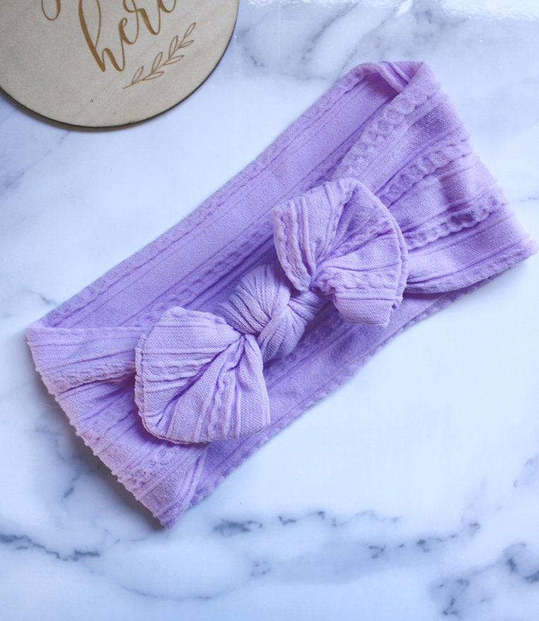 Baby stretch headbands are handmade with super soft stretch nylon cable knit fabric so it doesn't annoy your little ones head. Available in mulitple colours to match any outfit.