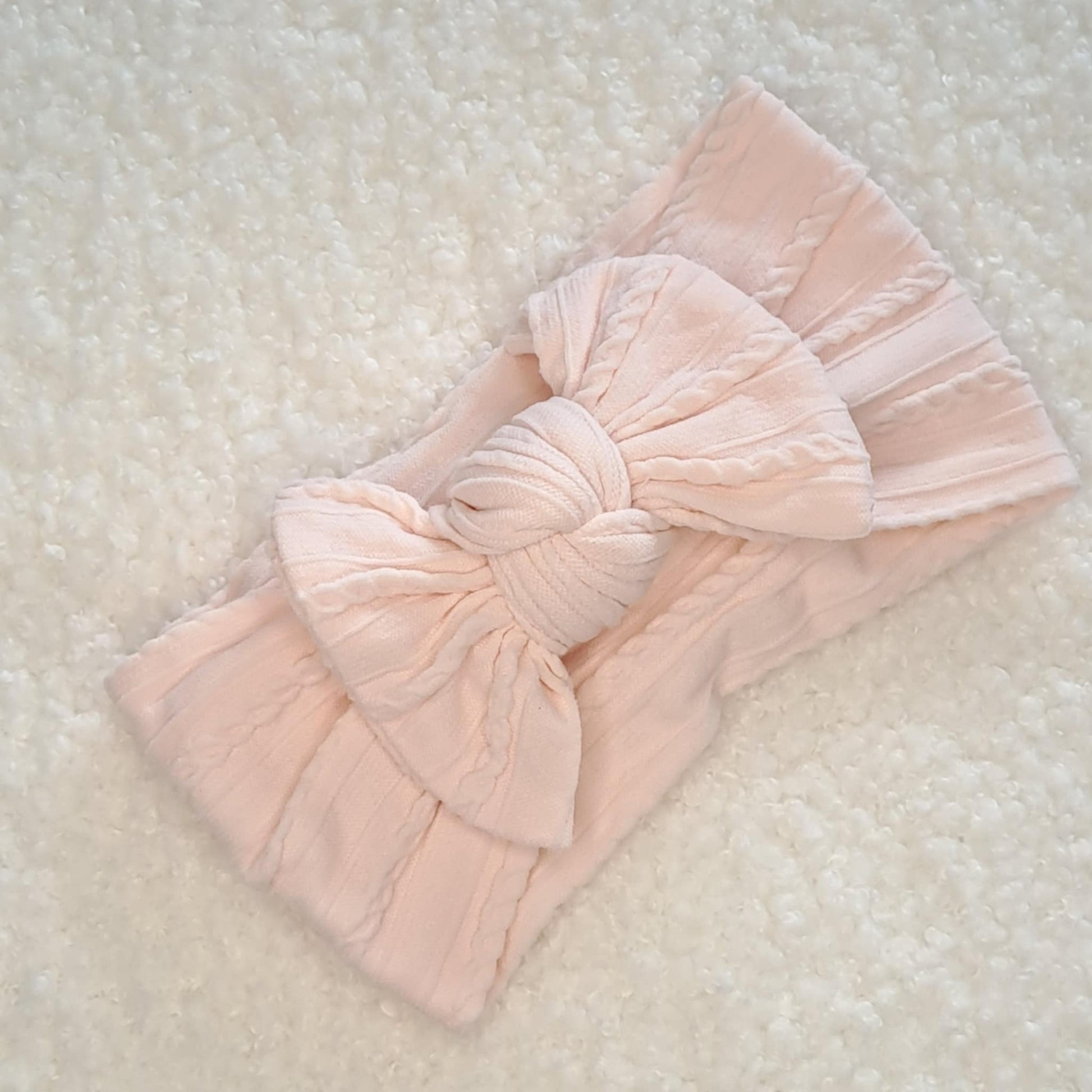 Baby stretch headbands are handmade with super soft stretch nylon cable knit fabric so it doesn't annoy your little ones head. Available in mulitple colours to match any outfit.