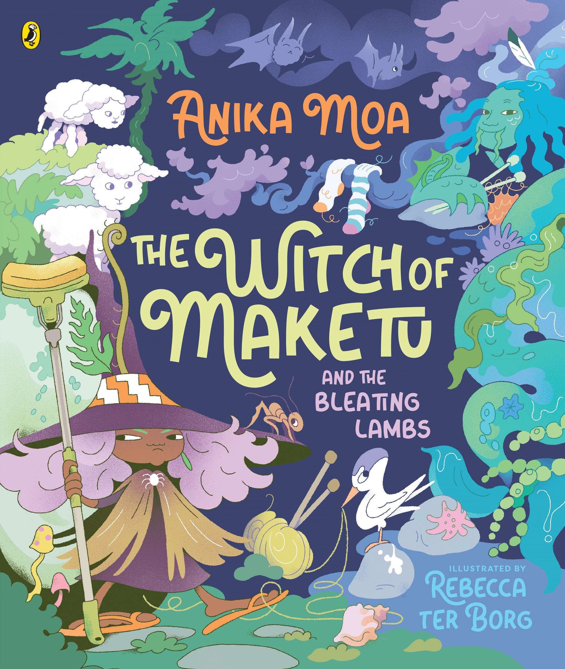 Aotearoa New Zealand's favourite witch is having trouble with her kai. How can she stop the juicy morsels from bleating all day and all night? A hilarious picture book from the wildly creative singer and entertainer Anika Moa that is sure to cast a spell on your heart! Aue! The Witch of Maketu is feeling grumpy and stink. The twelve juicy lambs she’s kept for her winter kai are bleating all day and night. She can’t get any beauty sleep! Uncle Hemi, a terrifying taniwha, helps the witch come up with a cunning and evil plan to keep those little lambs quiet. But will the woolly ones do what they’re told?