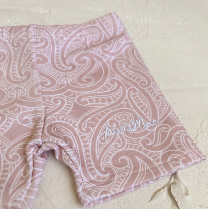 Please note- these are printed bike shorts, there may be the slightest colour variation to our blush tee