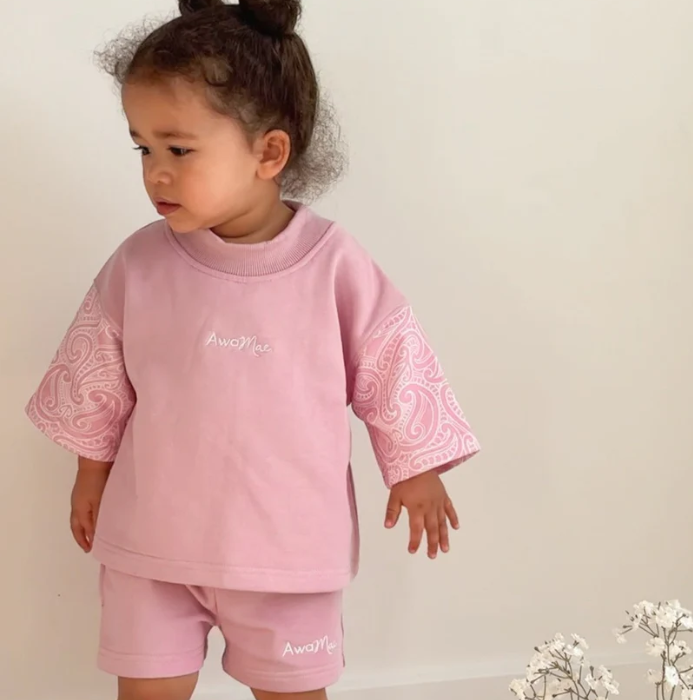 The wolf spring boxy tee in colour way Posie. Featuring a oversized boxy fit, our original wolf design printed on the sleeves, AwaMae embroidery, and a thick neckline, an everyday staple for the spring months