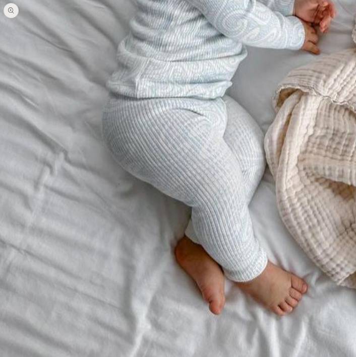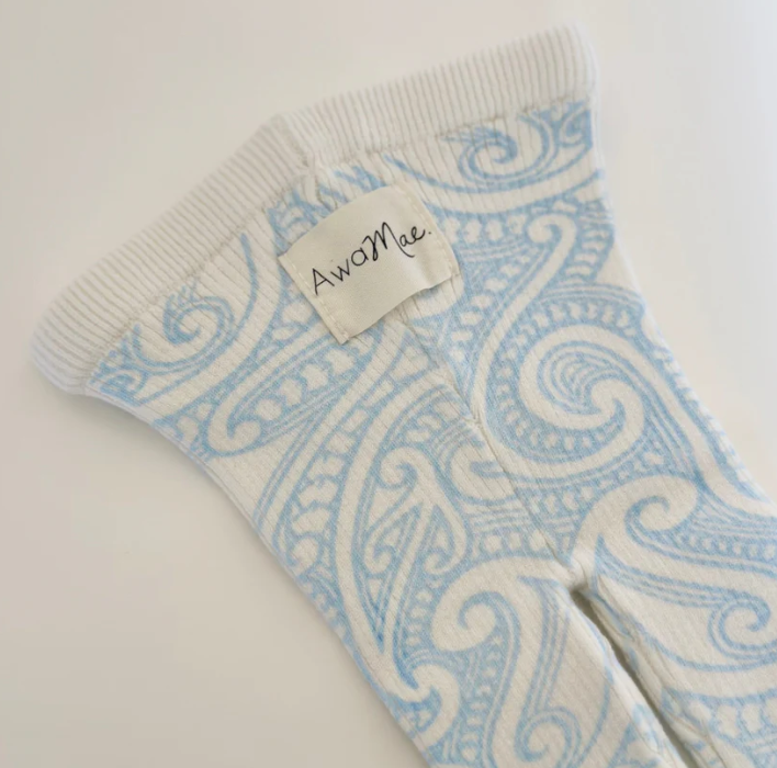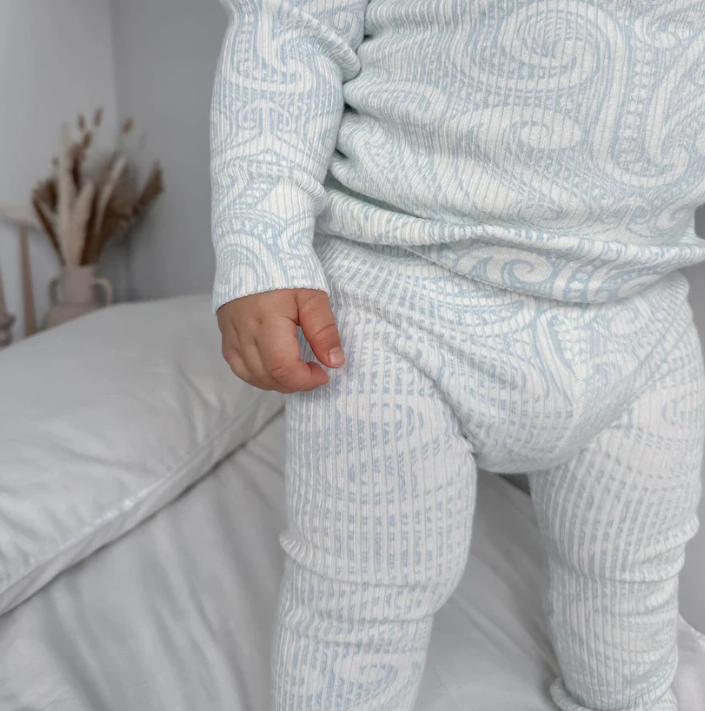 The AwaMae Knitted ribbed basics leggings- printed in our original wolf design in a baby blue colour way (Ice).