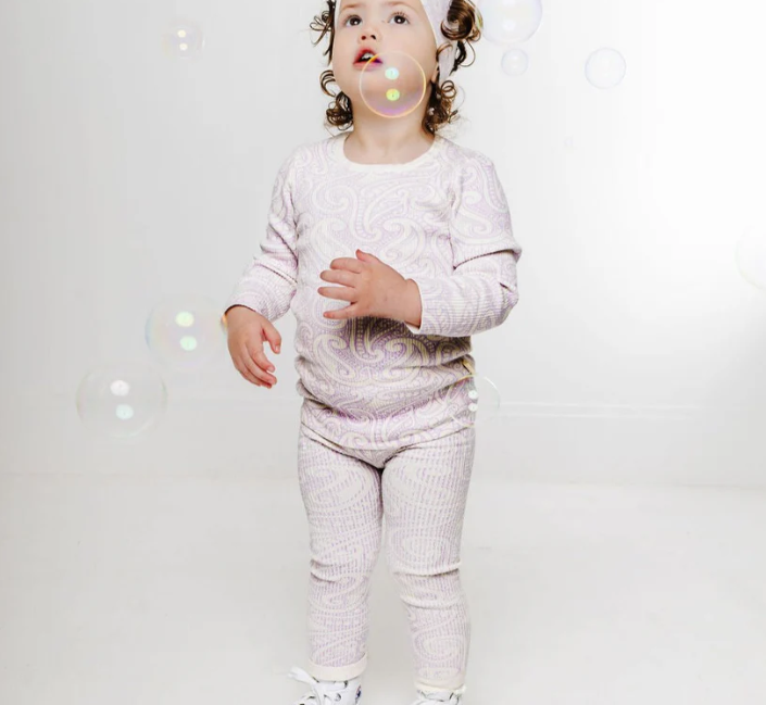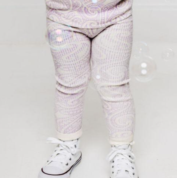 The AwaMae Knitted ribbed basics leggings- printed in our original wolf design in a lilac colour way (Lola).