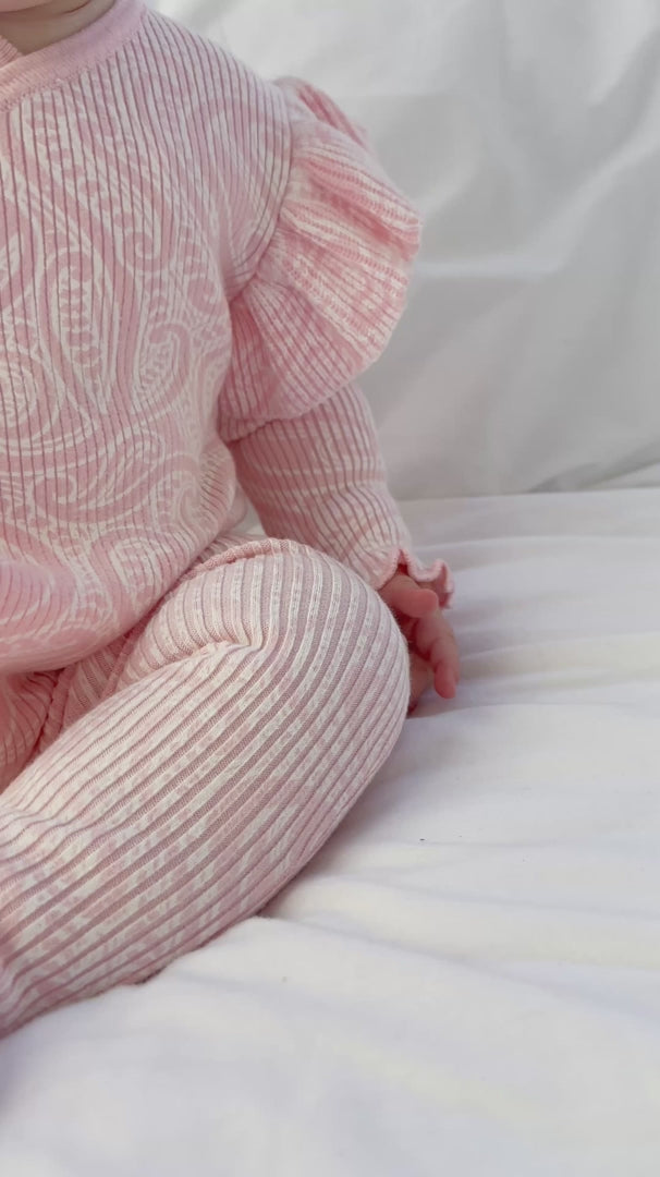 Knitted ribbed basics onesie- Ballerina. A light pink colour way featuring our original wolf design.