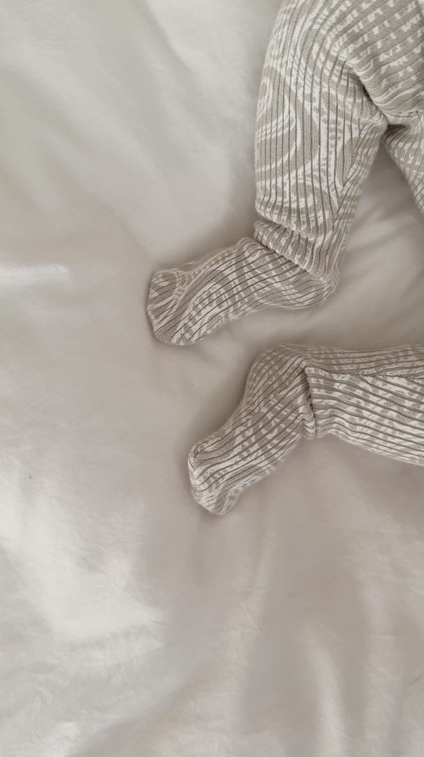 Knitted ribbed basics onesie- Pebble. A light grey colour way with a hint of sage green