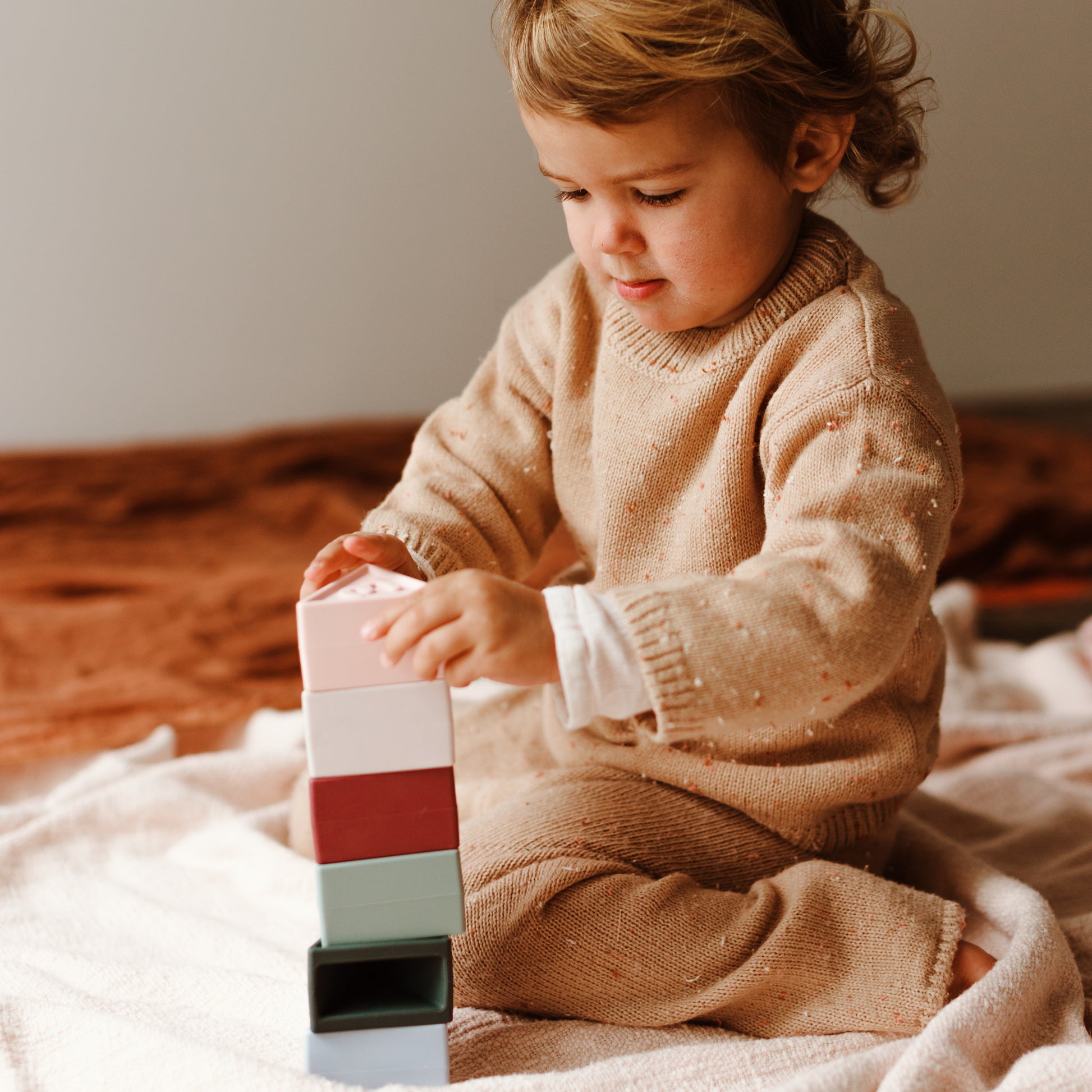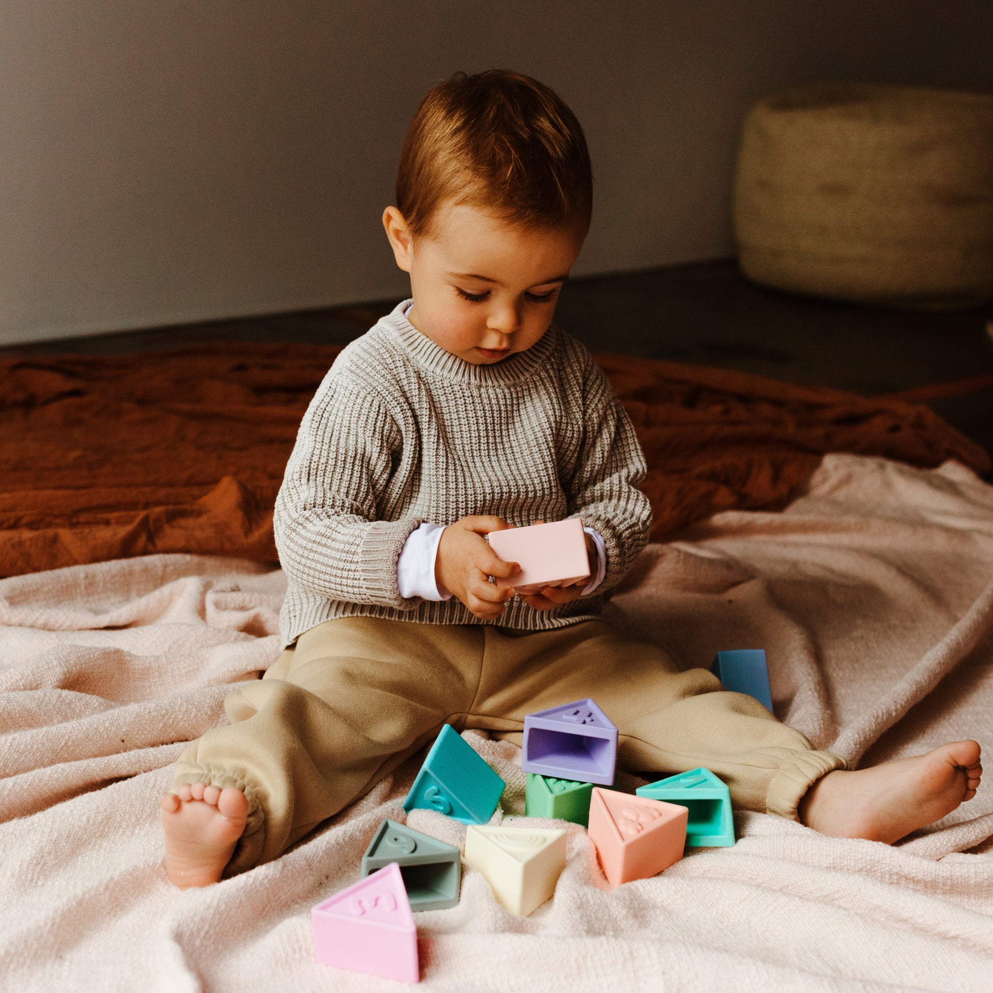 - Perfect shape and weight for little hands to explore, line up, balance and stack