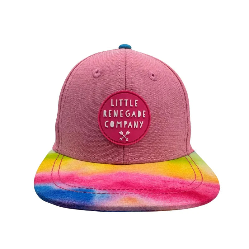 This vibrant cap comes in three sizes, ensuring a perfect fit for everyone, from children to adults. It features a pink crown with a bright, colourful rainbow watercolour print, with bold and lively hues of pink, yellow, green, blue, and purple blending seamlessly together.