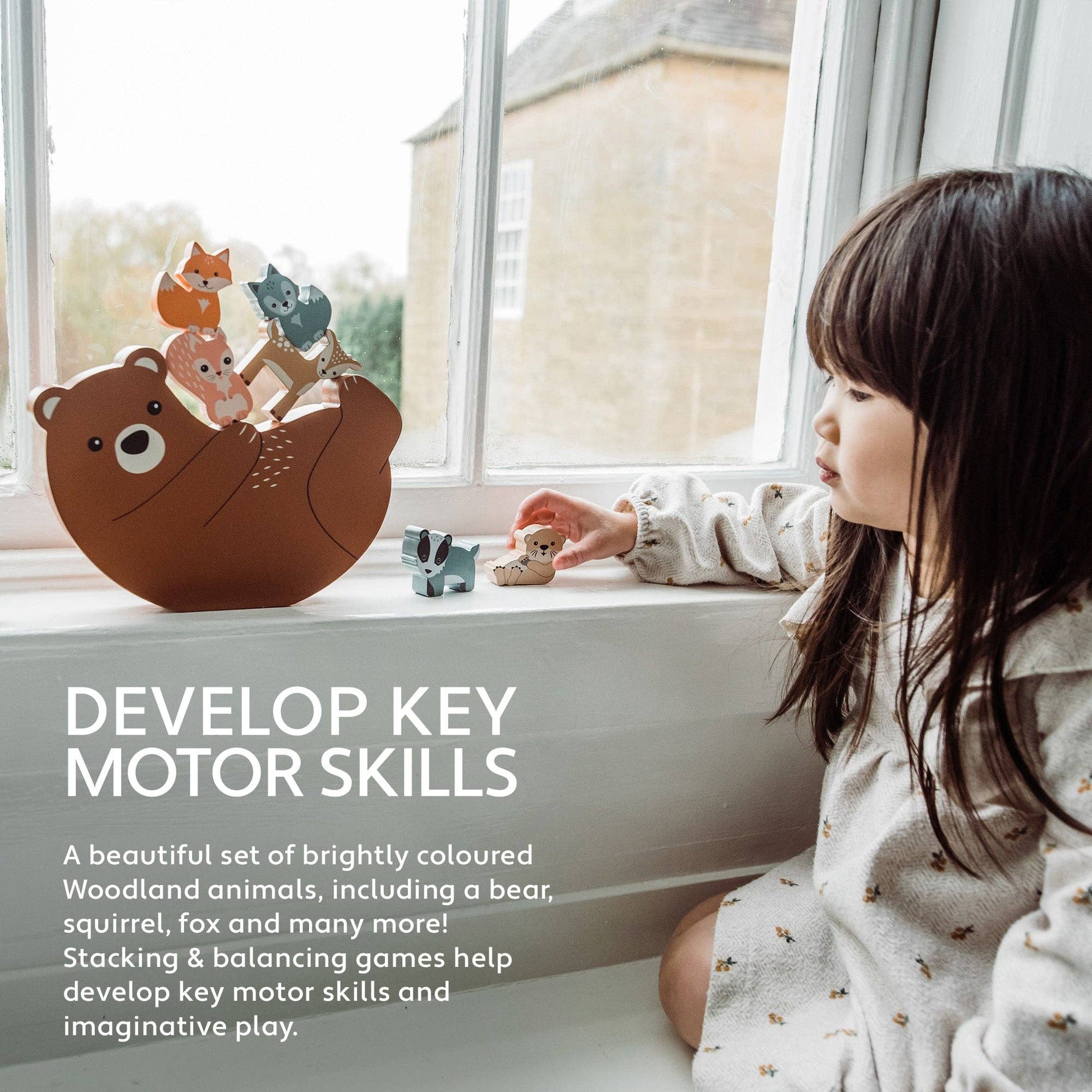 Balance all the different woodland animals as high as you can stack! This set of woodland creatures is great for imaginative play and developing coordination.